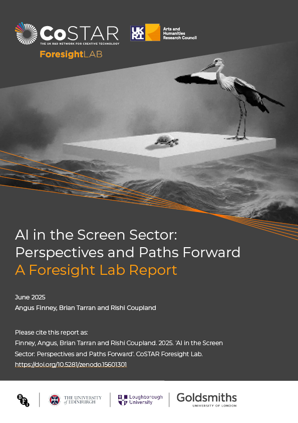 In June 2025, the CoSTAR Foresight Lab published AI in the Screen Sector: Perspectives and Paths Forward – the first UK-wide exploration of the overall impact of generative artificial intelligence (AI) on the full breadth of the UK’s screen sector.